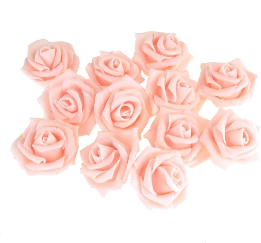 Dimensions: 1/2"h x 2"w x 2"L. Pack: 12 count. Foam roses flower hear are perfect for making bouquets, centerpieces, kissing Balls, boutonnieres, hair headbands, cake flowers or accents fresh flower decorations arrangements for weddings, baby shower and other special occasion.