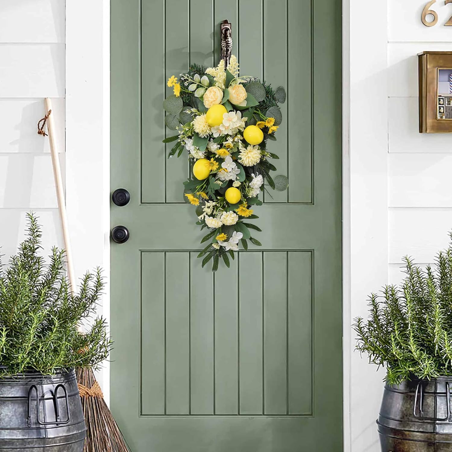 Features: 1. Material: The artificial lemon teardrop wreath is made with foam, cloth and PVC, decorated with artificial flowers and green leaves, looks vivid and vibrant. 2. Size: Approx. 50cm / 19.7inches. This is a cute door swag to decorate your front door or stair railing. 3. Easy to Care: This lemon teardrop wreath looks very lifelike and will never wither. You don’t need to spend too much time on maintenance. 4. Light String: There are options with and without lights string. The wreath with lights will make your room decoration more charming. 5. Occasions: Artificial flower swag is suitable for spring home decor, wedding parties, wedding arches, centerpiece decorations, show window, shop, restaurant, office, flower basket, party, celebration, aisle, stairway, fences and many other events. Specification: Material: Cloth, PVC, Foam Color: Multicolor Size: 50cm / 19.7in Weight: 350g Package Include: 1× Artificial Lemon Teardrop Wreath