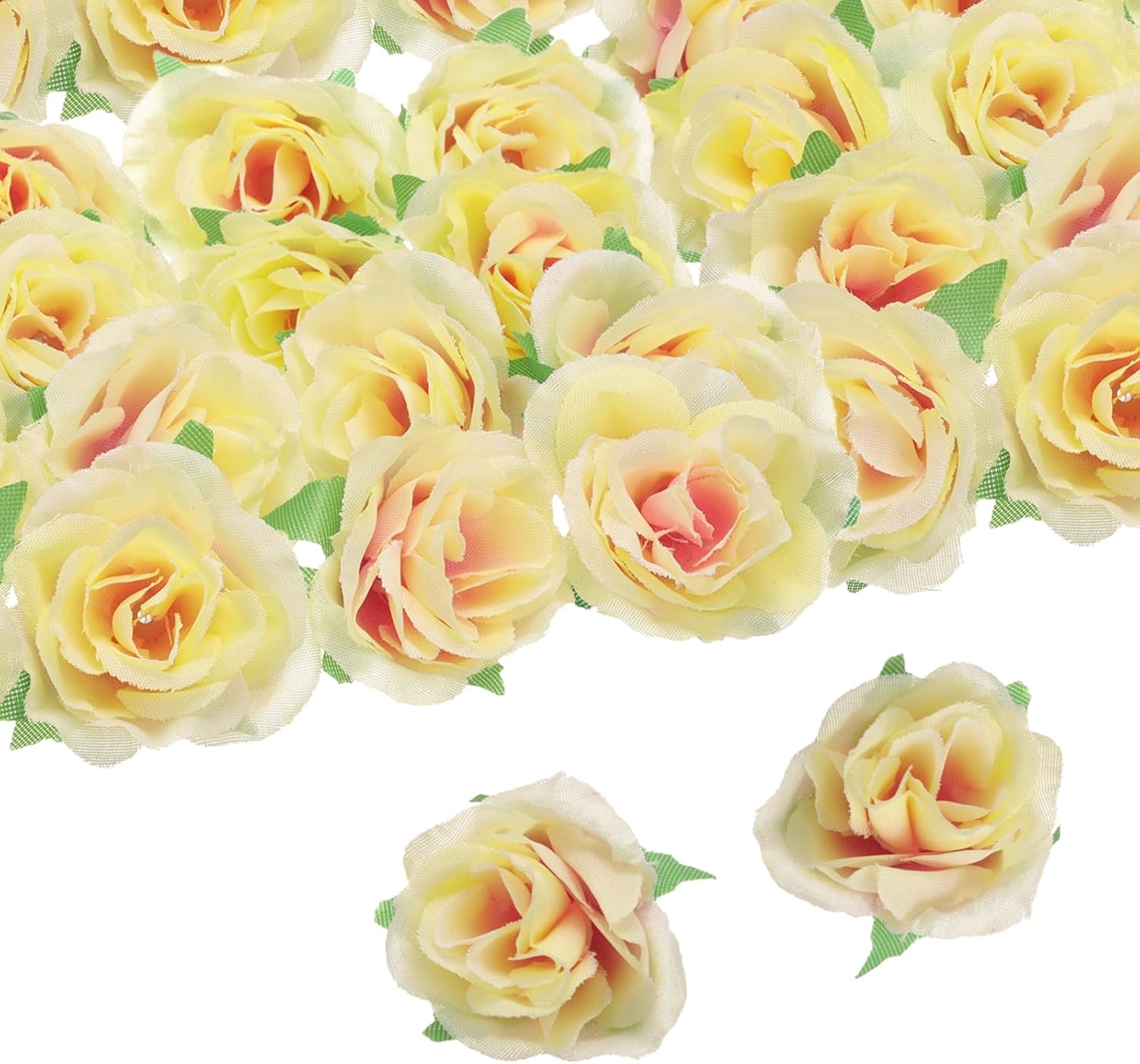 Description:Functionality - The silk fake rose heads are versatile decorative elements for DIY projects such as creating wedding bouquets, centerpieces, party decorations, or enhancing home decor with floral accents. Feature - The special thing about artificial flowers is that they do not wither. They can be reused. After crafting or decorating, they will always stay bright and beautiful. Don't worry about becoming unsightly after shrinking. Application - These artificial roses can be used to decorate weddings, parties, and home interiors adding a romantic touch to a bridal bouquet and enhancing the beauty of a dining table centerpiece.Notes - Keep them away from direct sunlight for extended periods to prevent fading, and avoid exposing them to extreme temperatures or moisture, which could damage the silk material. Specification:Material: SilkDiameter: 3 cm/ 1.2 inchesLength:3 cm/ 1.2 inchesPackage Content: 100pcs x Artificial Flower Heads