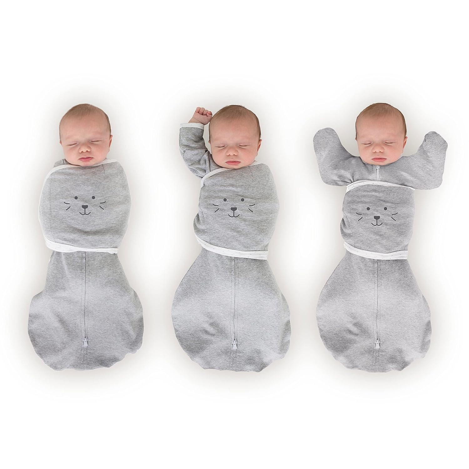 The 6-way Omni Swaddle Sack with Adjustable Wrap and uniquely shaped 1/2 length sleeves with mitten cuffs is the ideal swaddle designed by a nurse. The ergonomic and convertible design supports more natural hand and arm positions, and provides parents with more options when preparing baby for safe sleep. The design allows parents to swaddle with (1) arms on chest under the wrap (2) one or both hands up, and (3) both arms up and out from under the wrap. The sleeves with mitten cuffs keep baby's arms warm. Foldover mitten cuffs may be worn open or closed, parents can open the cuffs, so baby can self-soothe by sucking on hands or close the cuffs to protect baby from facial scratches. Many experts recommend parents to swaddle baby with hands within reach of mouth, so baby can self-soothe. Babies who can self-soothe sleep longer and better. When baby is swaddled with hands up or arms up, baby can self-soothe by sucking on hands. The ergonomic, patented design with 2-way zipper is easy to use. The adjustable wrap is narrow and does not interfere with baby's hips and the soft hook-and-loop fasteners make it easy to swaddle baby. The 2-way zipper allows parents to unzip from the foot to check baby's diaper without unwrapping the swaddle. The 2-way zipper makes it easy to place baby in the sack by unzipping from the top. Size Small 6-14 lbs, 0-3m. Size 3m 12-18 lbs for bigger baby. When baby shows signs of attempting to rollover, the AAP recommends that parents stop restraining baby's arms with a swaddle or wrap. Parents can use the Omni as a transition swaddle with arms up and wrap secured around tummy and chest. When baby outgrows the Omni Swaddle Sack, we recommend a SwaddleDesigns Transitional Swaddle Sack® or a zzZipMe Sleeping Sack wearable blanket. Super soft, premium cotton knit is breathable, stretchy, and natural. 100% Cotton. Machine wash. Tumble dry. US Patents 11,659,870 & D924,539. Int’l patents EU, UK, Canada and others online