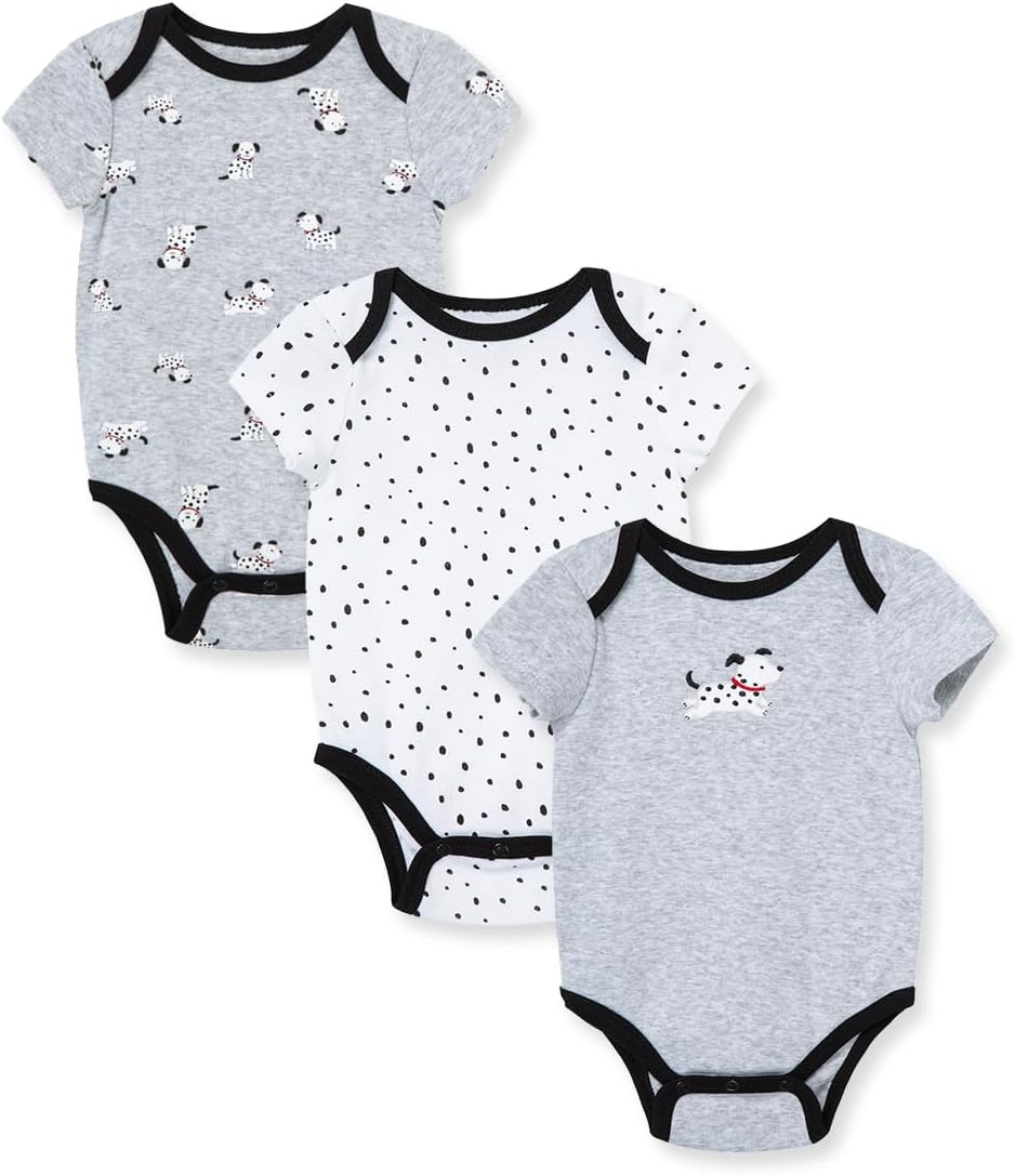 Made with ultra-soft 100% cotton and a scratch-free label, these 3-Pack of Onesie bodysuits for baby boy are gentle on baby’s delicate skin. Whether it’s napping or all-day clothes, capture those Insta-perfect moments in trendy patterns and designs. These adorable Little Me bottom snap onesie are a practical and precious baby shower gift. Let parents focus on snuggles and bonding while you provide stylish baby boy clothes for their little one. Make diaper changes easy-breezy with the convenient snap closures on these bodysuits. These onesies can be cleaned with machine wash cold and tumble dry low—less stress for you means more snuggles for your little one. Made for milestones and messes! We make clothing that celebrates those fleeting years when newborns transform into young toddlers. Little Me Boys Baby Clothes abide by the belief that babies should always be comfortable, snuggly, and safe, free to do what they do best: play, sleep, and thrive.