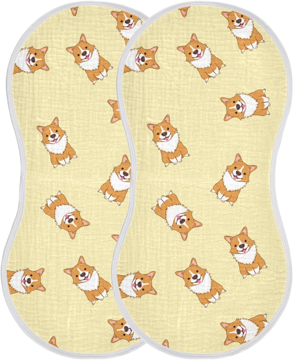YYZZH Cute Corgi Dog Pattern Muslin Burp Cloths Feeding Cloth for Baby 4 Pack Soft 100% Cotton Super Absorbent Baby Washcloths Bibs for Boy GirlSizes: 22 x 11 inches / 56 x 28 cm; Including 4 items; One-sided full print;Material: 100% cotton (Contact surfaces) + TPU composite polyester (100% polyester + 100% polyester ammonia film);Product description: burp cloths are made of cotton yarn fabric, 4-layer cotton yarn, soft and thick, good water absorption effect, the fabric is skin-friendly; Wrap edge craftsmanship, will not grind; There are sewing straps on the top, which can be used for suspension, which is convenient for storage and does not occupy land;Feature: there is a composite TPU waterproof film at the burp cloths bottom, prevent penetration of the bottom layer; Can be used as a burp cloth / feeding cloth, absorb water, and not seep water, and effectively prevent clothes from dirty; It can also be used for baby/children's scarf, saliva towels, pillow towels, baby bibs, etc;Washing instructions: routine washing; Washing with warm water less than 30℃; Detergent such as bleach should not be used; Should not soak for a long time; Can be washed, ironed, and can be machine washed gently, do not dry clean.