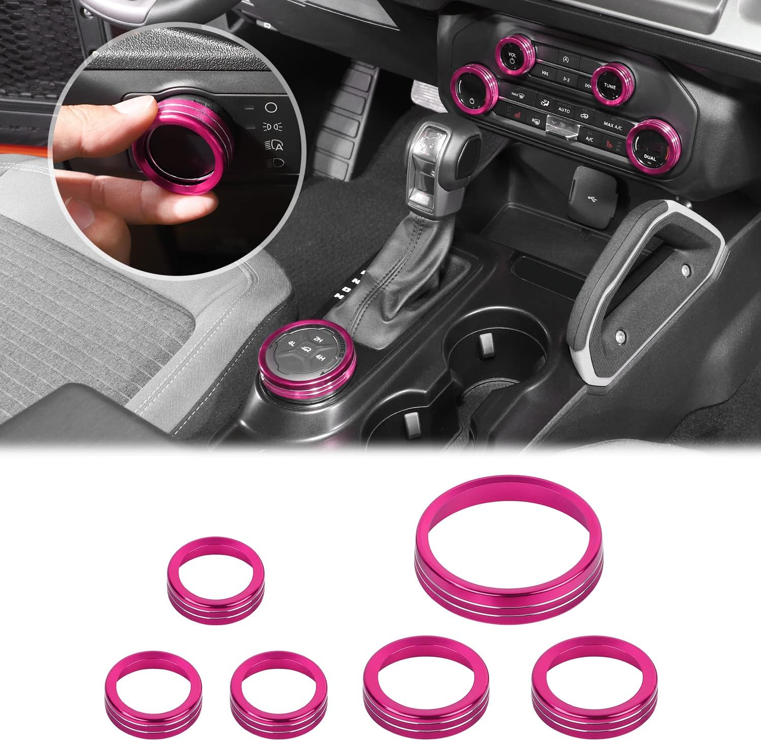 APPLICABLE MODELS: Air Conditioner Headlight Switch Knob 4WD Wheel Drive Trailer Gear Switch Knob Cover for 2021-2026+ Ford Bronco Accessories(Included: Headlights*1 Four-wheel Drive*1 Air Conditioning*2 Audio*2)
