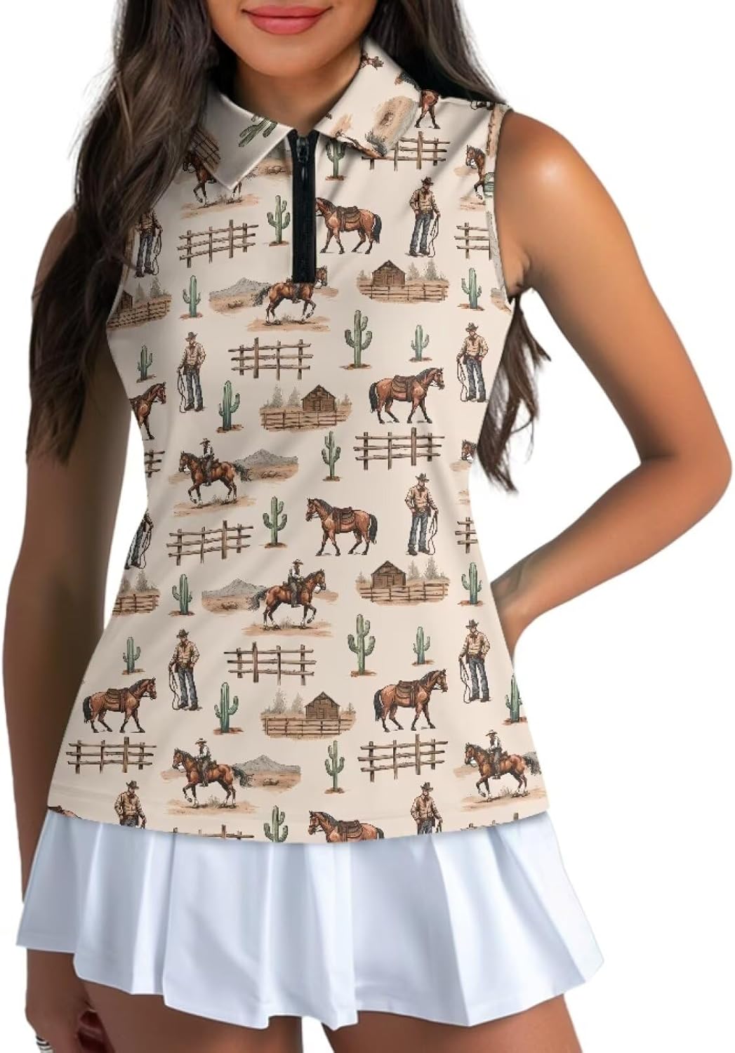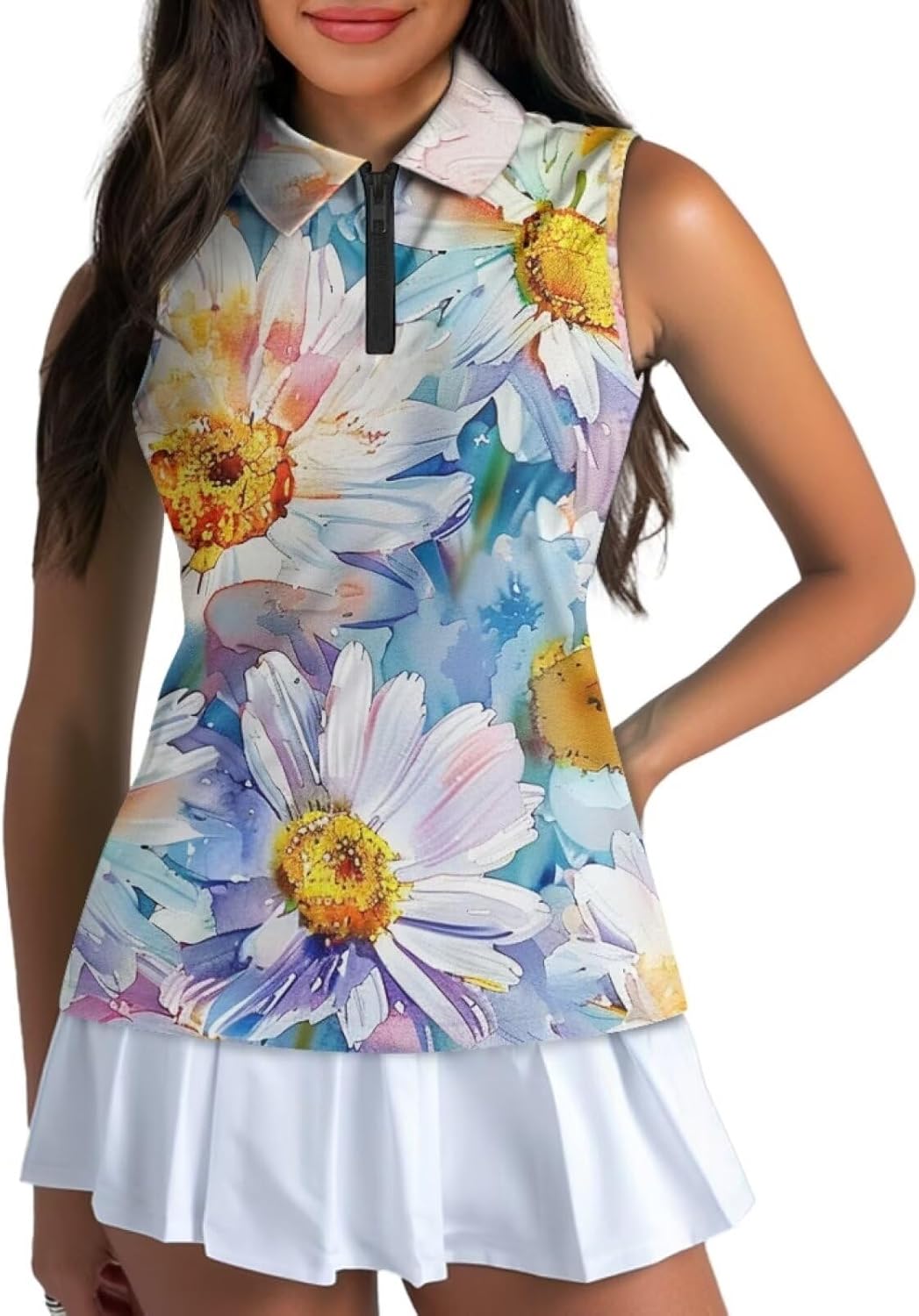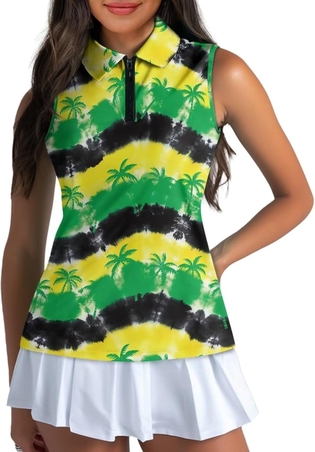 Stylish Design: Designed with both fashion and functionality in mind, this sleeveless golf top features a sleek and modern design. The feminine cut and stylish patterns add a touch of elegance to your golf attire. Whether you're playing a round with friends or participating in a tournament, you'll look and feel confident on the course.
