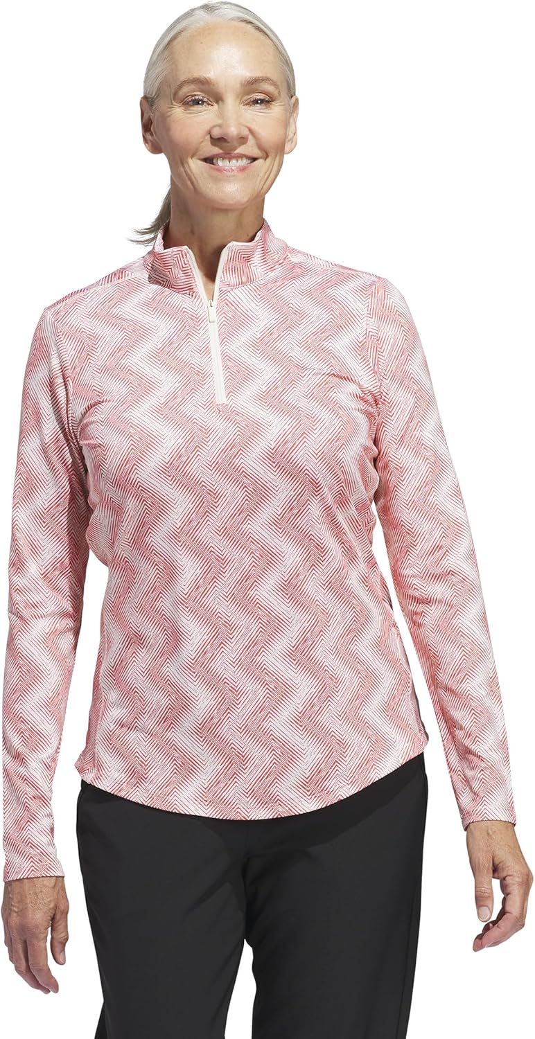 A versatile adidas long sleeve shirt you can wear for any round, this women's golf polo makes for easy mix-and-match wear. A quarter zip lets you dial in comfort, and stretch knit fabric offers an unrestricted feel for a fluid swing. Made with a series of recycled materials, and at least 70% recycled content, this product represents just one of our solutions to help end plastic waste.