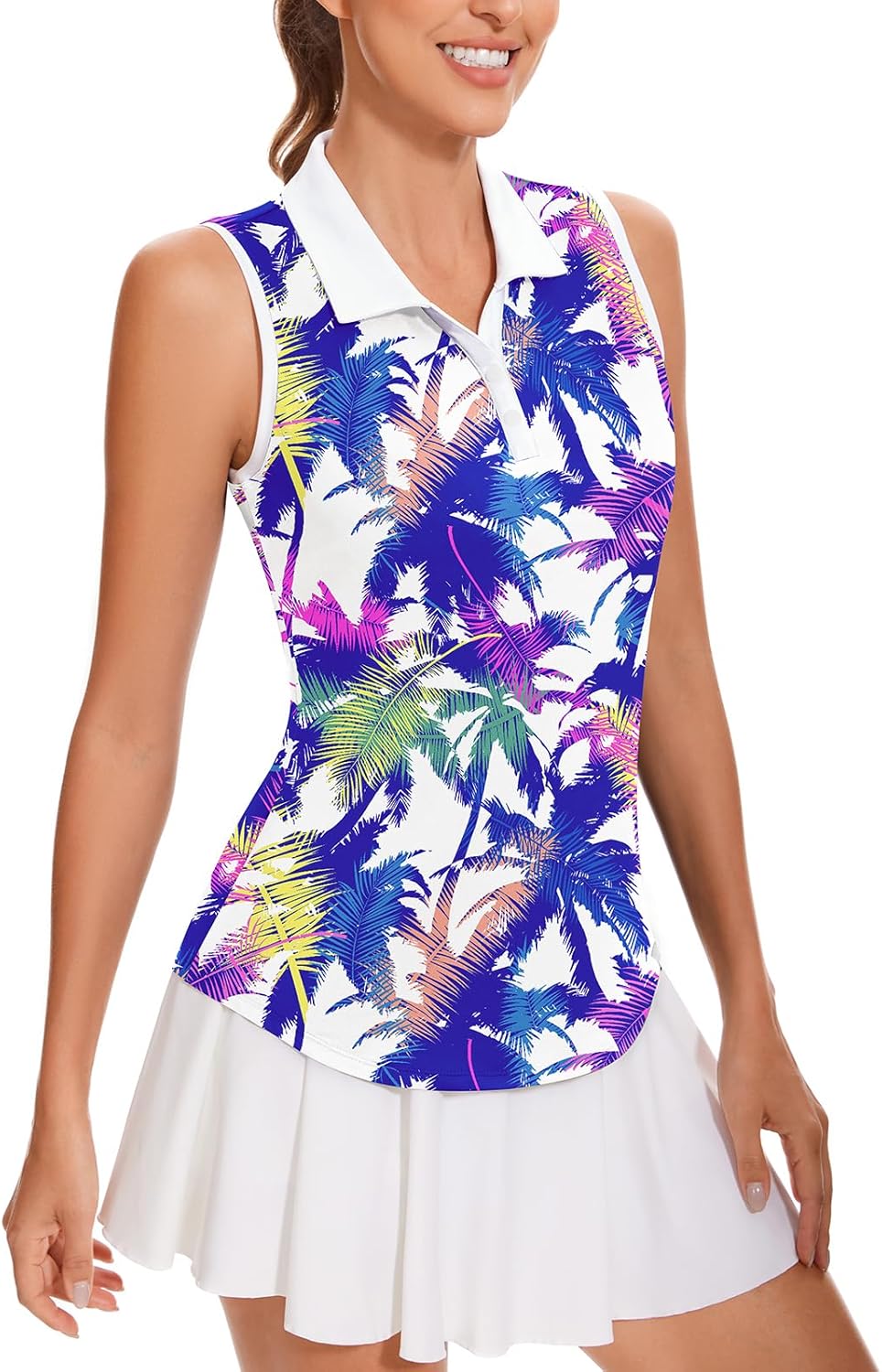 【Golf Shirts for Women Materials】Sleeveless golf shirt adopts breathable lightweight,moisture wicking, help you pull sweat away from the body. Print golf tank top for women keeps you cool for ultimate comfort as you play your round of golf.